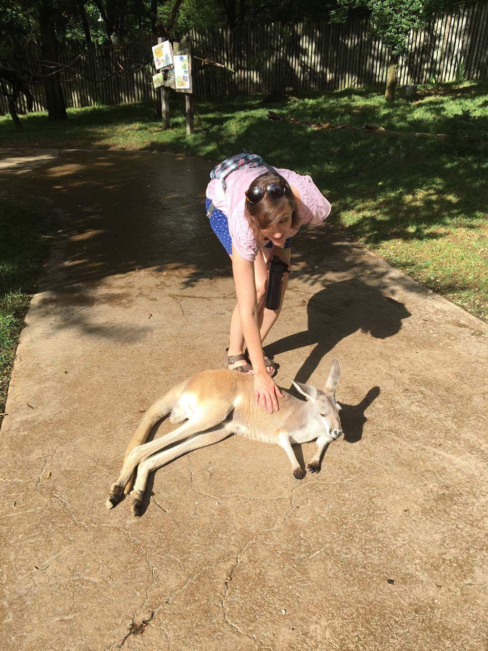 And, for some crazy animal ladies, the most fantastical thing ever: we got to walk around with, and pet (!!!!) the kangaroos!!! Since it had been a rainy day, they weren’t all people’d out. Gahhh!!!