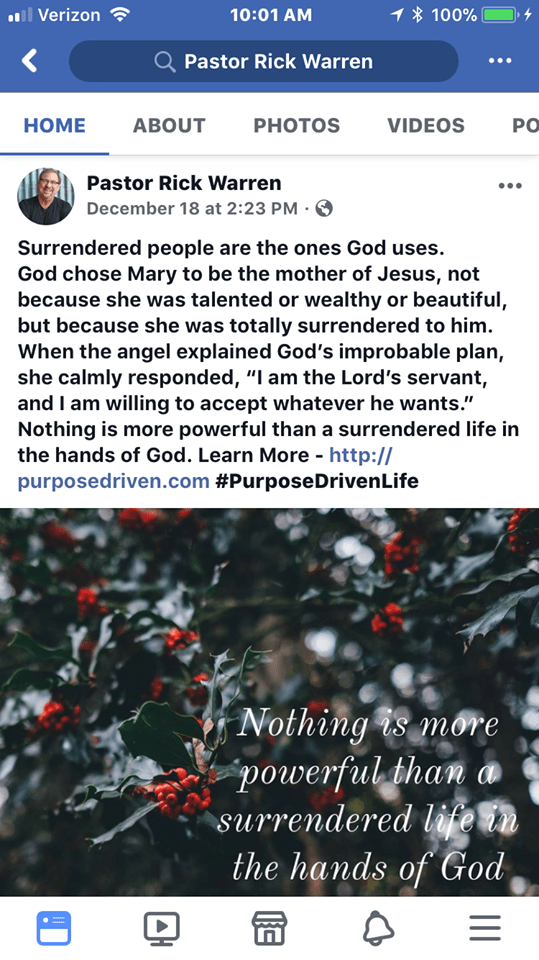 First, I saw this yesterday, when I was scrolling through Pastor Rick Warren’s Facebook page: