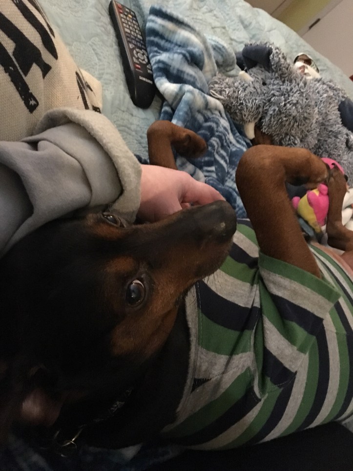 And this little dude just seems to know I’m stressed and sick and he’s been sticking extra close too: