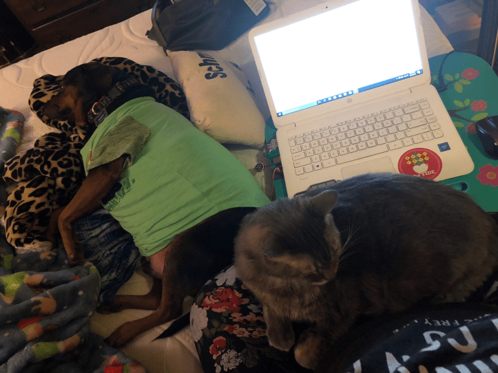 Now I’m home, piled up in bed, washing linens, and hanging out with these guys: