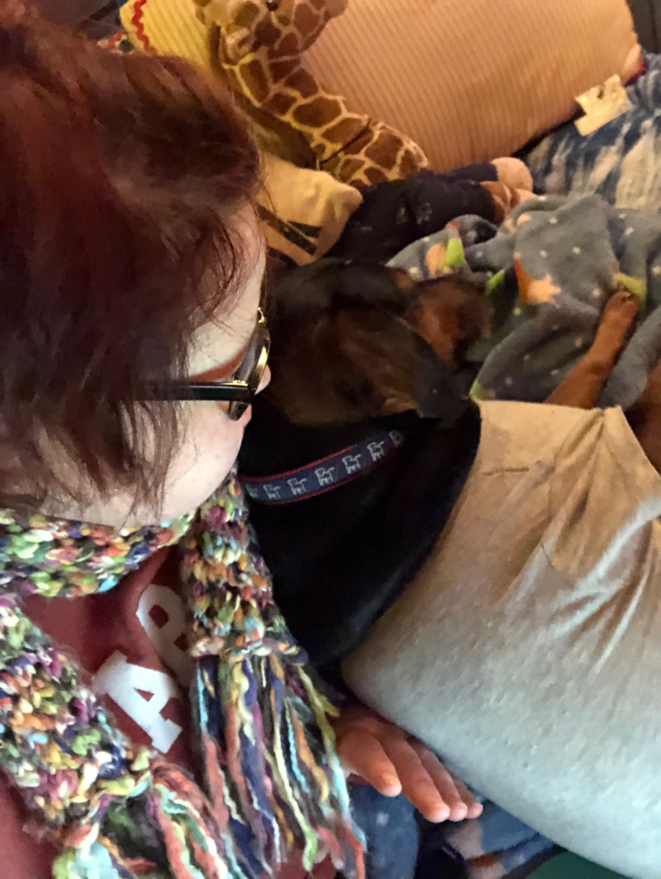 And with my combination of upset and plague, my sweet Henry is a Level 5 Clinger While he is always a love bug, he never just climbs up on me and lays on my shoulder – he prefers laps – so he knows I’m not feeling good. He is the BEST little man: