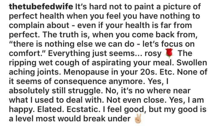 Chantal has an incredibly complex medical history and was so ill that she was filmed for “My Last Days” last year before she was given a stem cell transplant that has given her a new lease on life. As such, though she is still quite ill, she is ALIVE, and that has given her an incredible new perspective.