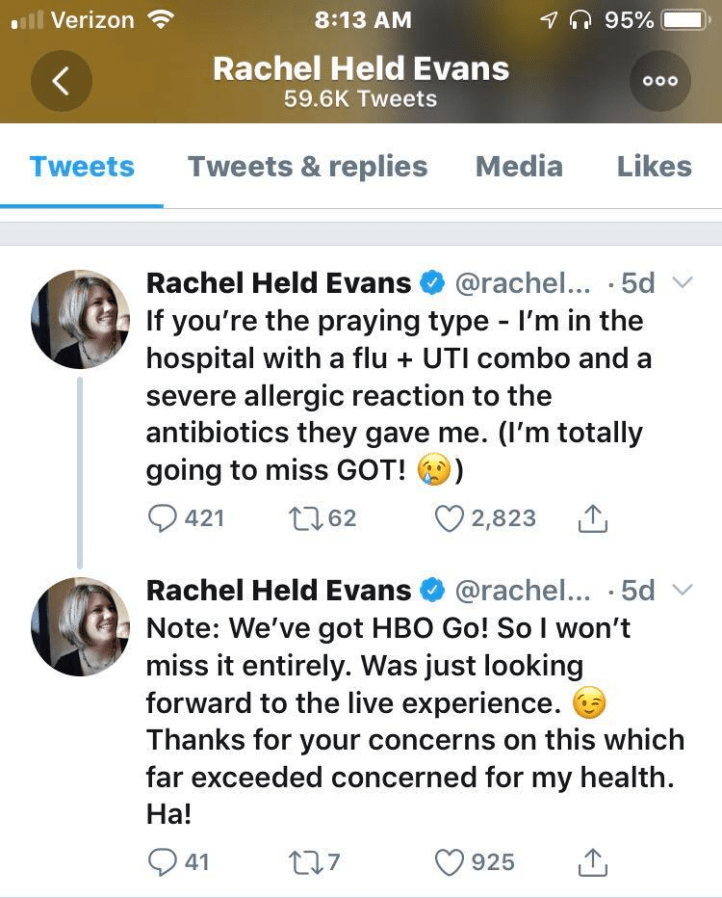 See, the previous Sunday, an author I love, Rachel Held Evans, tweeted this: