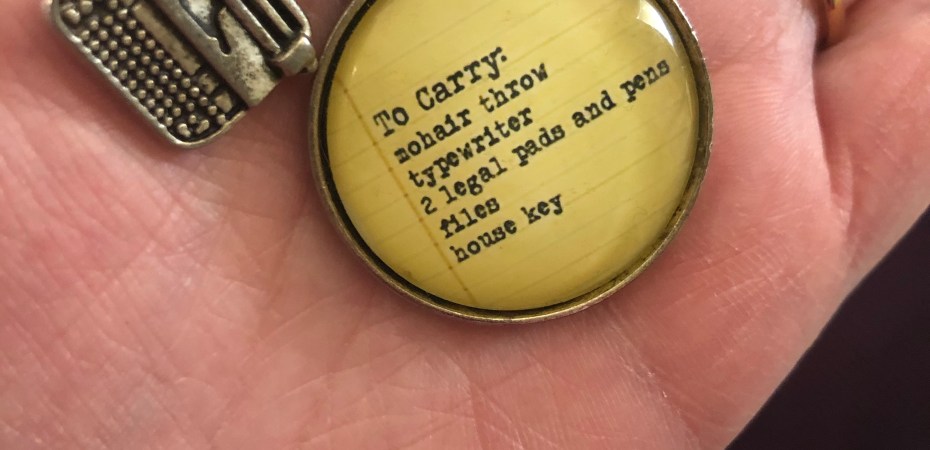 Like many female writers my age, I adore Joan Didion. I don’t remember a world without her in it. Pictured above is my “lucky writing necklace” with her well-known packing list from her essay, “The White Album,” one of many essays that shaped me, published the year I was born. She’s forever the Queen in my mind.