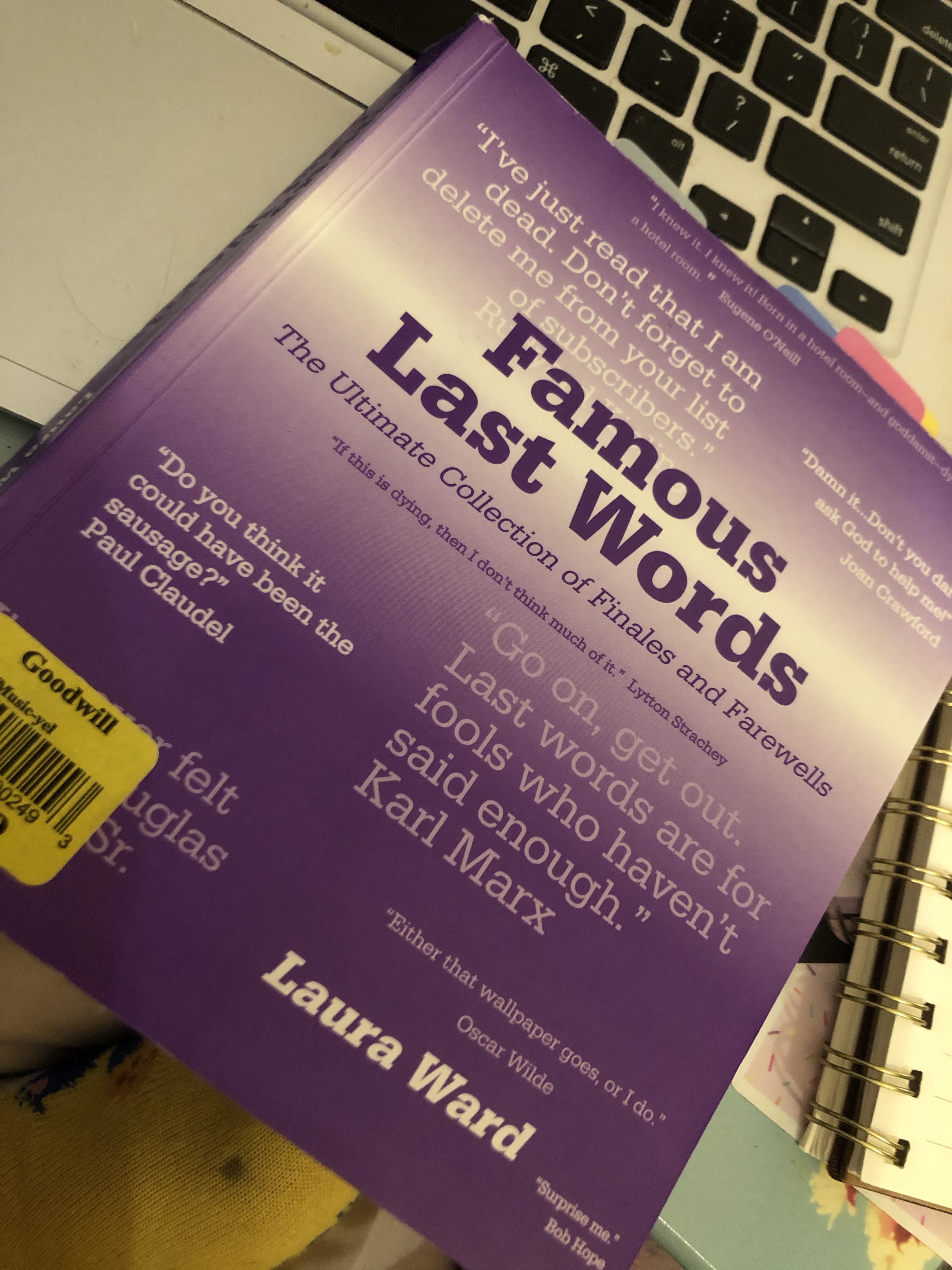 I’ve been reading through a few books of famous last words. Each book puts the last words in context and many entries have prompted me to do a quick search of the individual in question to refresh my memory or learn more – and some of them have made my mind wander and gotten me thinking.