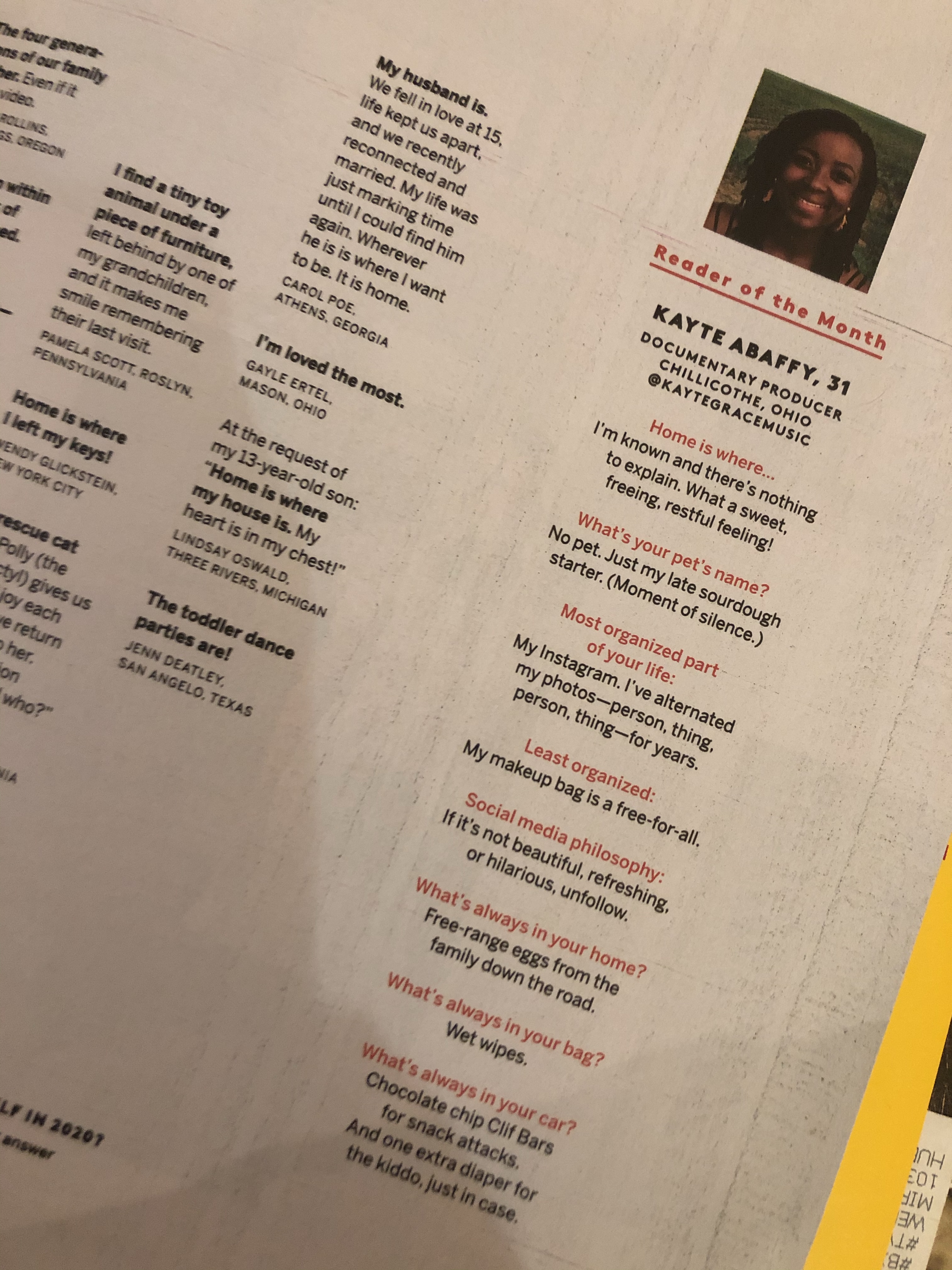 When I started paging through my magazine, one of the first things I came to was the Reader of the Month. She seems like a fabulous lady altogether and there is one thing in particular she said that I just LOVE.
