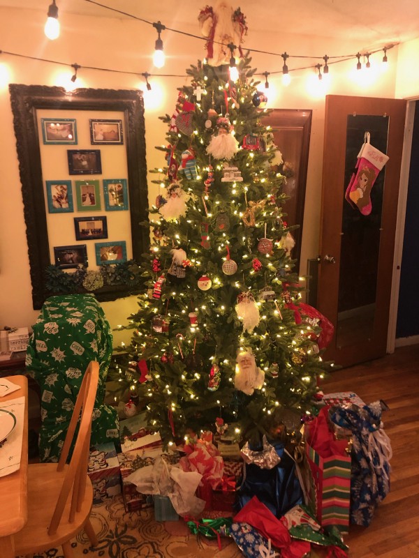 Our den, which is absolutely Christmas beautiful, was not finished until Christmas Eve — and my amazing husband did it for our family.