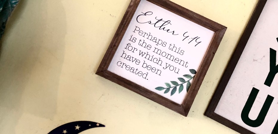 In this passage, the most frequently quoted verse is often translated, “Perhaps you were born for such a time as this.” As pictured above, I have it on my wall – and it was the theme of our Southern Christian Writer’s Conference this past year. It has inspired so many over centuries and centuries.