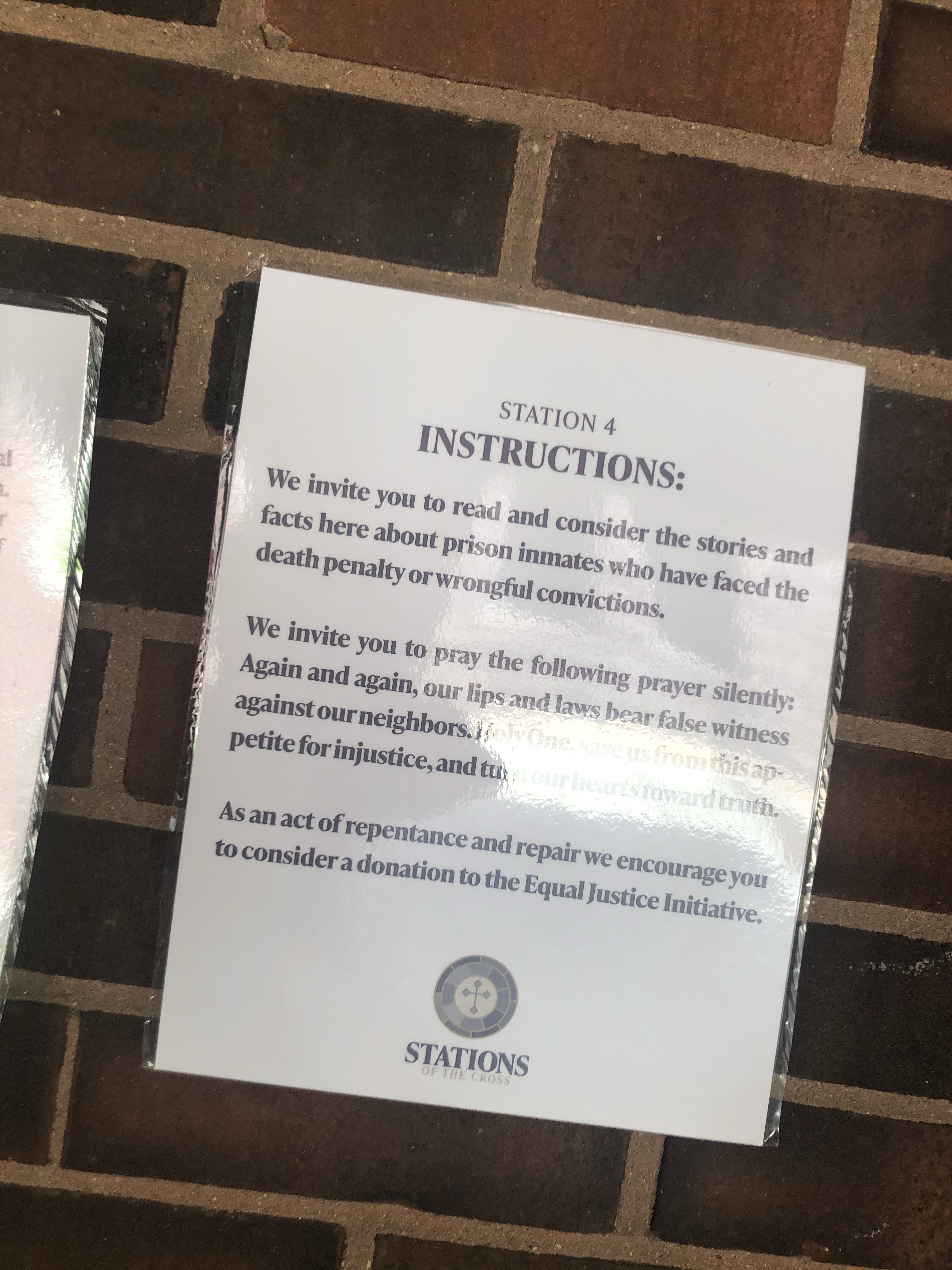 Another Station that has stayed with me is Station Four, where we stopped to read the stories of those who have been wrongfully convicted – and many given the death penalty – as Jesus was.