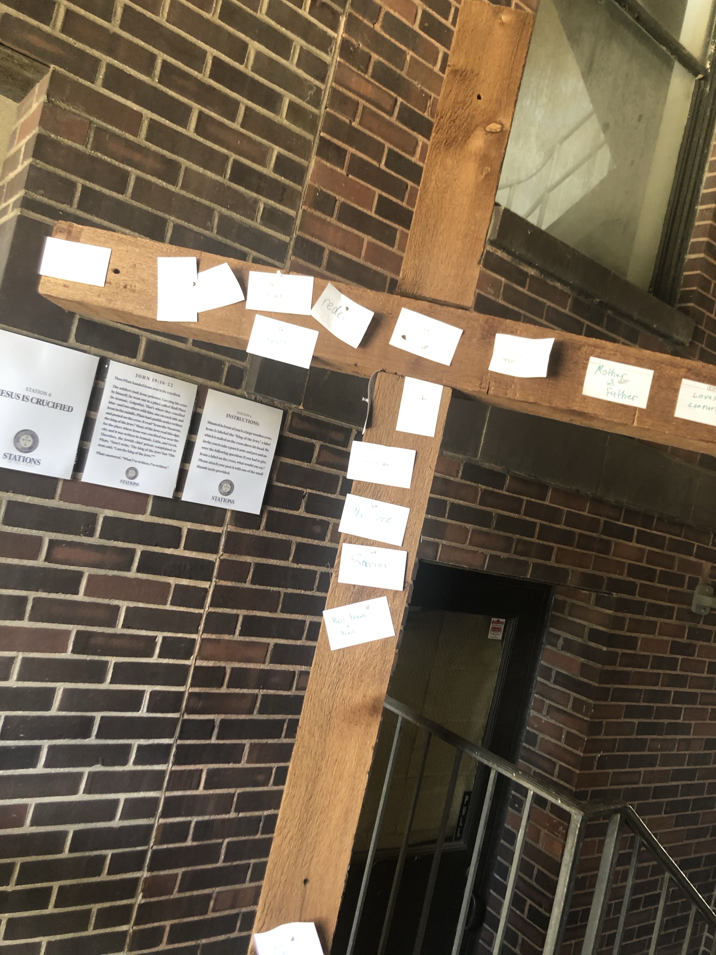 Finally, the Stations end at the Cross where we were encouraged to write on a card who Jesus is to us and place it on the Cross.