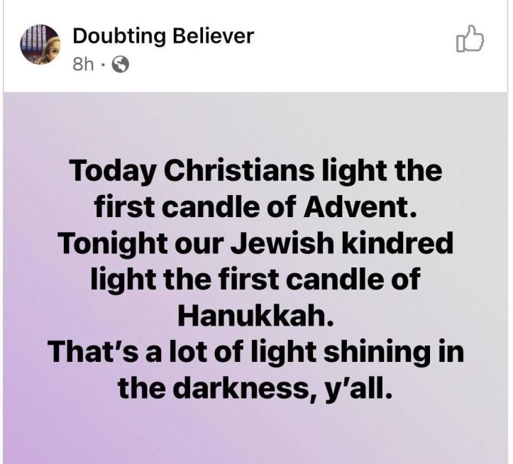 On Sunday, a dear friend shared this beautiful thought – and, as there has been great darkness in our world this year, I want to share it as well.