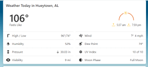 Here in the Deep South, we are experiencing our first gnarly extreme heat wave of the summer with heat indexes expected to be between 104 and 107 all week.