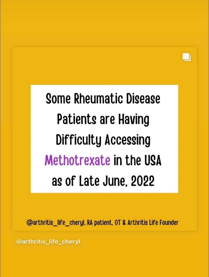 I am also on Methotrexate injections and have been for years. I need my medications – my stable therapy – to WALK and to MOVE AROUND and TO USE MY HANDS.