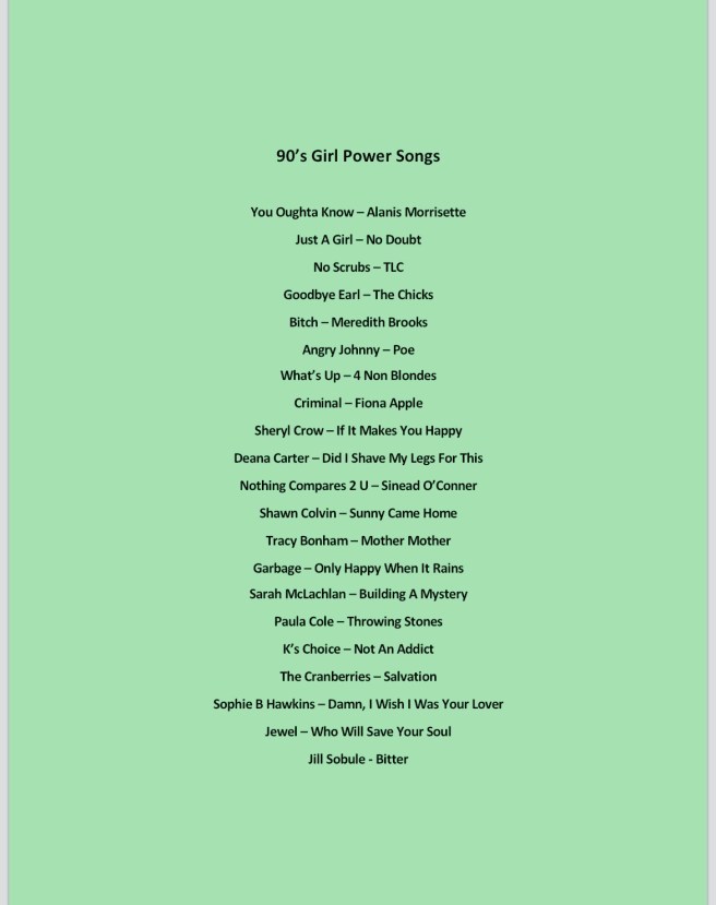 As we were talking about some of the fabulous vintage angry 90’s girl songs, I decided it was time for a playlist. It has since grown to include some songs that are outside of the MTV angry girls genre but are ubiquitous 90’s girl songs for one reason or another.