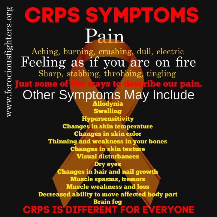 Actually, November is CRPS Awareness Month and I will be doing weekly posts with more in-depth information about different aspects of the disease process and learning to live with it – but, for now, here is just a brief reminder of a few things that come with a CRPS diagnosis: