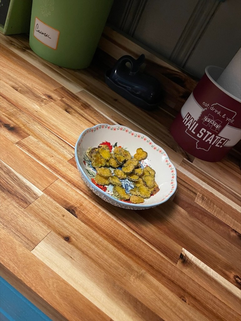 Tonight I made a new GF New York style pizza recipe that was really good and also tried some Texas Roadhouse recipe GF fried pickles that were pretty tasty.