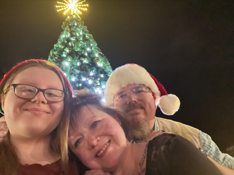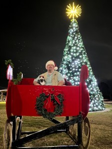 One thing we had not done in a few years was take pictures all together for Christmas – so we went to our town’s Christmas tree a few nights ago. Not only is the tree lovely, there are also several adorable photo areas set up.