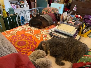 As always though, despite this flare, as I sit here having some red beans and rice for breakfast writing to you, I’m snoodled up with the world’s best weenie dog and the world’s most handsome grey feline, our precious daughter is resting in the other room with our grandpup, and my amazing better half just said goodbye for work. All of our family is safe from the storms. There is much to be thankful for. ❤