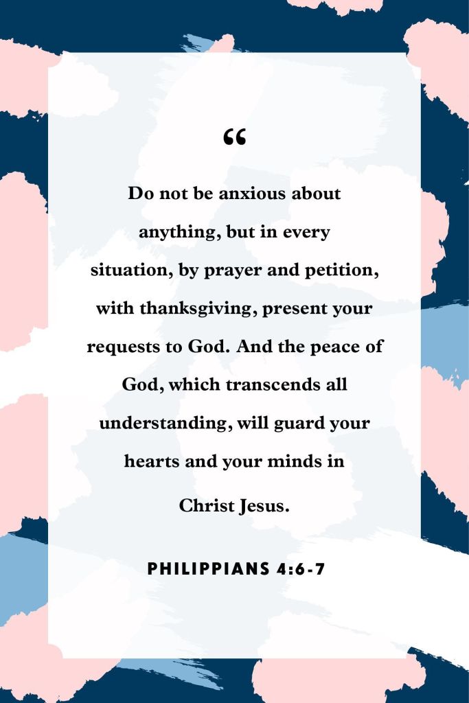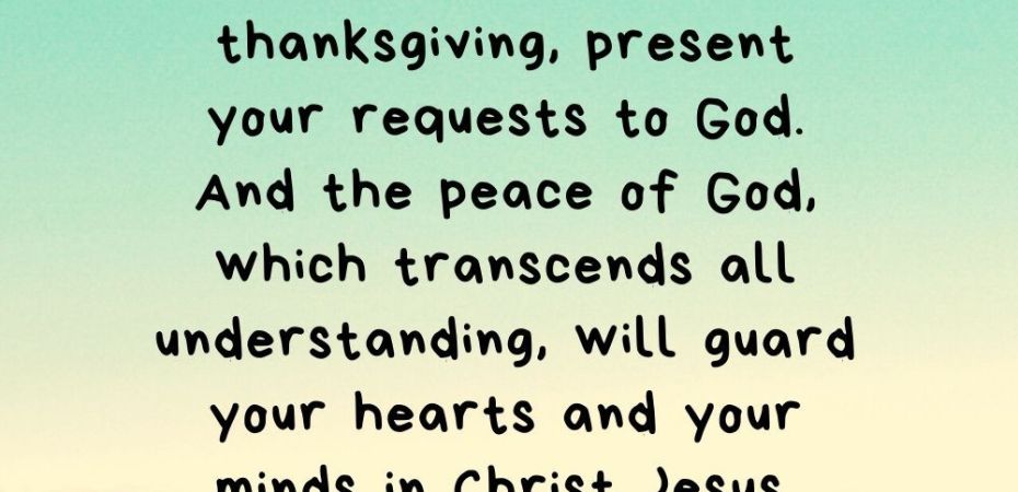Be anxious for nothing, but in everything by prayer and supplication, with thanksgiving, let your requests be made known to God; and the peace of God, which surpasses all understanding, will guard your hearts and minds through Christ Jesus. – Philippians 4:6-7 (NKJV)