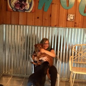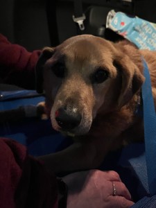 As it was, I have been still oh-so-sick and could not go in the building so my husband immediately went to talk to our vet and see what could be done to let me see her – ❤ – and the amazing staff at our vet’s office actually brought her out to me on a little gurney and let our family have time with her sitting in the back of my car and love on her with her enjoying the breeze.