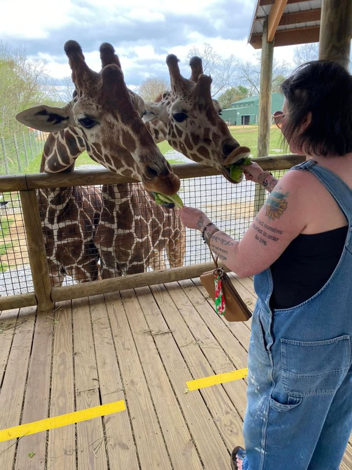 Giraffes are my favorite animals, and, this past spring, Bug, Liz, and I went down below Montgomery, to the Safari Park, where among many amazing experiences, I finally got to feed and pet my giraffes – however, somehow, I got sidetracked and never shared the experience here.