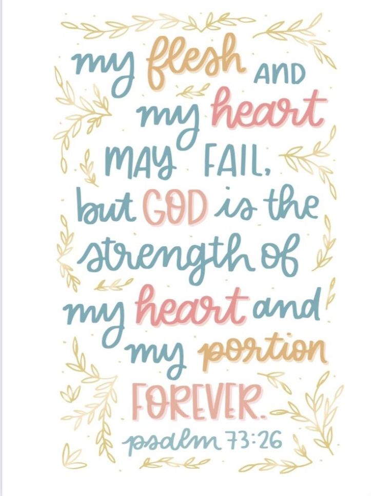 My flesh and my heart may fail, but God is the strength of my heart and my portion forever. – Psalm 73:26