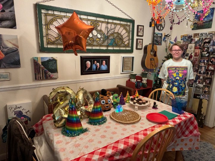 Bug and her friends were going to see the Five Nights at Freddy’s movie so that was the theme of her mini birthday pizza party.