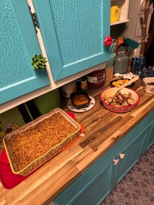 Here in the Hippie Hut, we had a wonderful day, with my better half smoking a ham and making GJ’s chess pie recipe (so yummy). I made green bean casserole and peanut butter fudge and warmed up a few other things – and we had a tiny turkey breast for the fur babies too. ❤