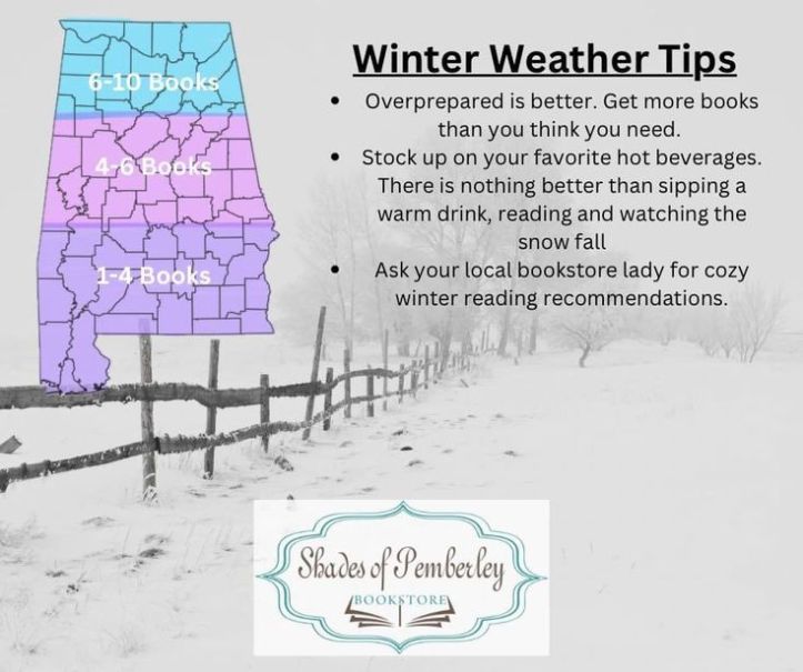 I am absolutely loving having more books in my world (as well as more writing time) and had in mind to share, perhaps weekly, my favorite books I’m reading. I was deciding how to go about this – when we, here in the Deep South, have been forecast to possibly be snowed/iced in for several days next week. At the very least, we will have temperatures in the single digits, which we are not at all accustomed to – and we will all be spending a significant amount of time inside.