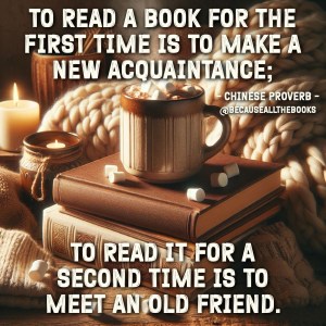 While I can’t imagine having time to do that, I do appreciate the spirit of revisiting the books we love best as well as finding new ones.