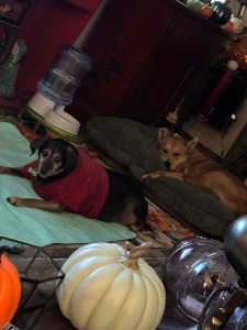We went by our vet’s office to pick up Dax from his chemo and have Ted’s first well check up and he got the all clear.