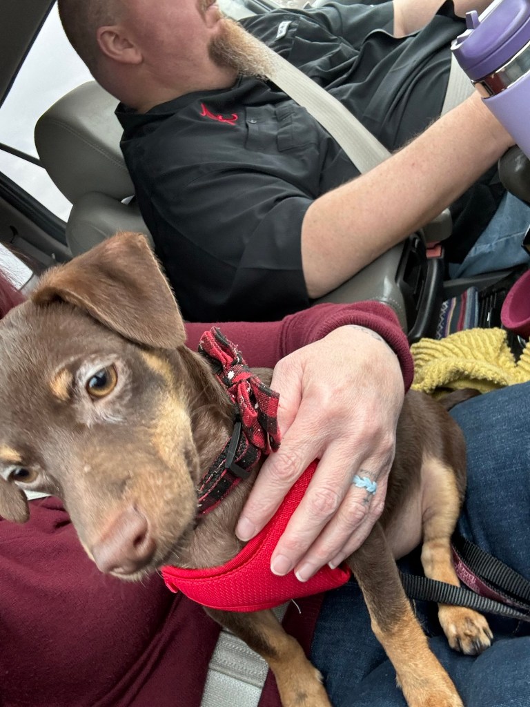 Thank goodness, Daddy took us on our adventure as I have not yet mastered driving with a wiggly climbing puppy.