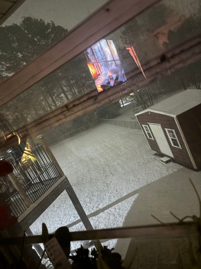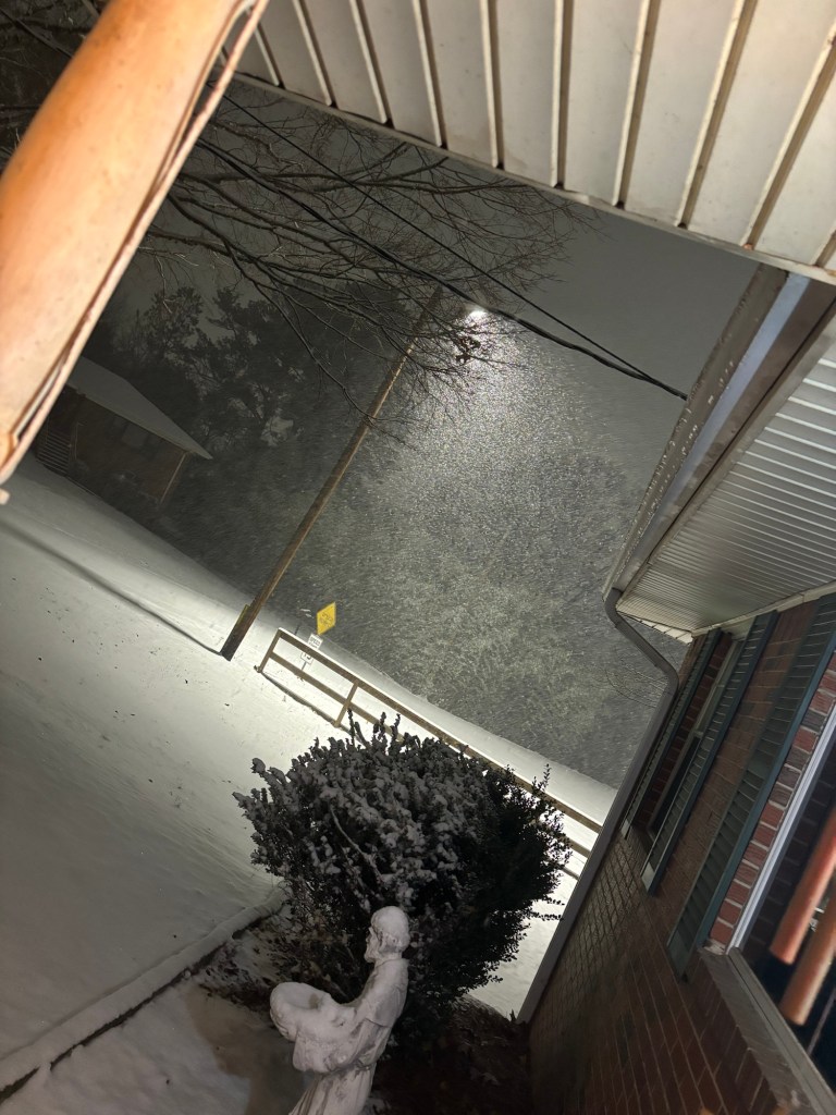 After many changes to the forecast, we were expecting mostly freezing rain and ice only – and were delighted to also have snow through the night Thursday.