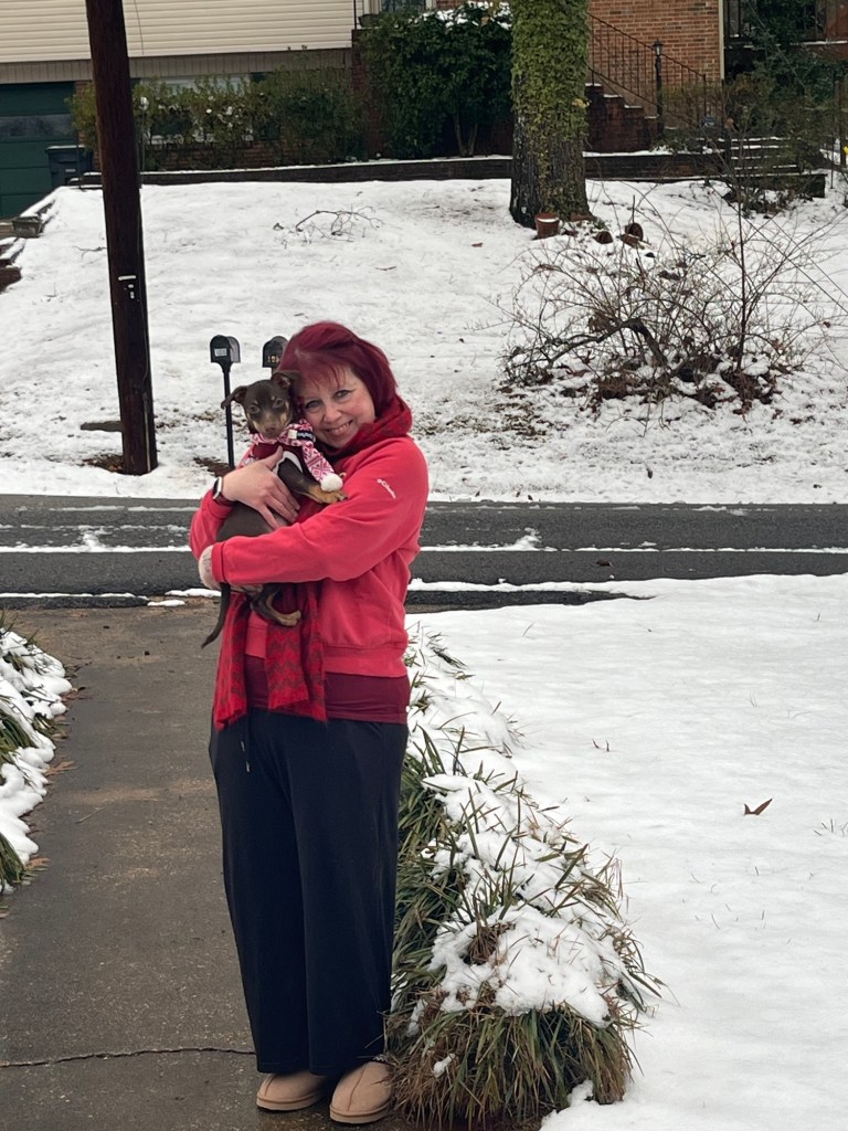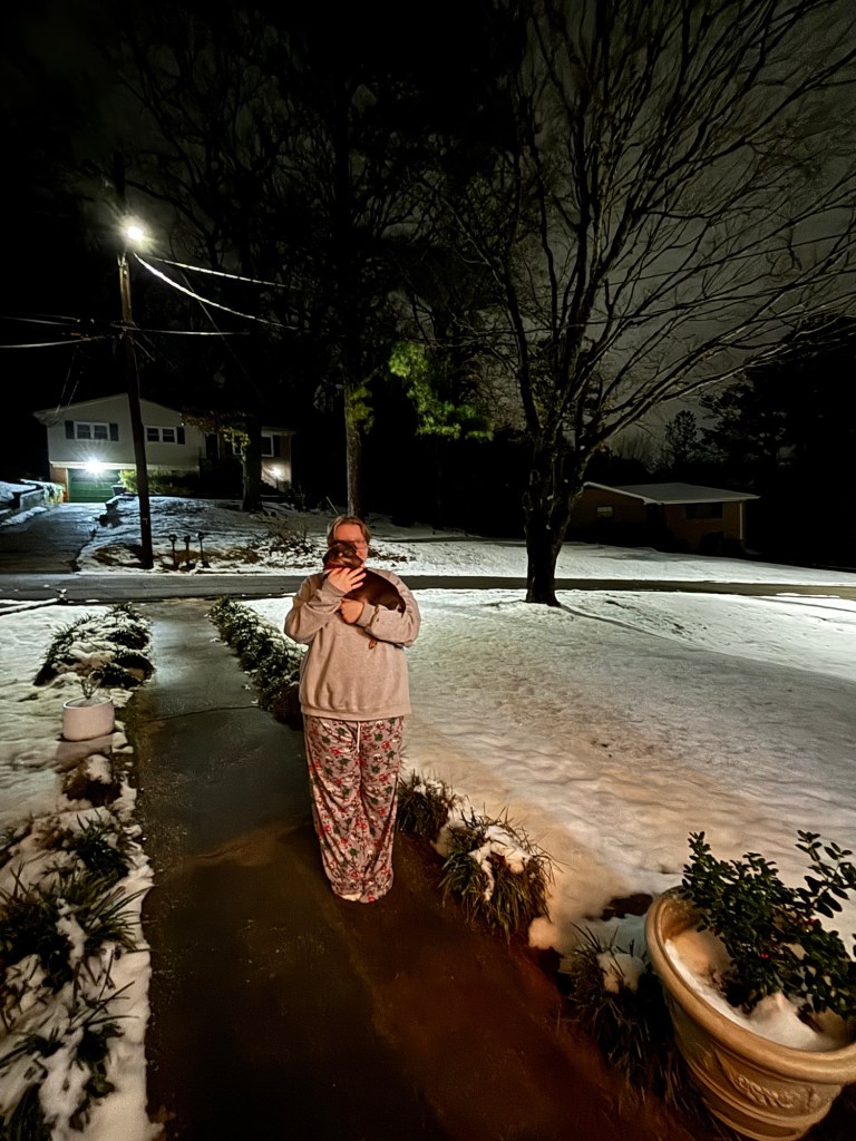 Because of the cold temperatures, the snow stayed with us all day Friday – and Oliver went out (briefly – he isn’t a big fan of cold weather at 12 pounds) to see it, wearing his Henry scarf. ♥️