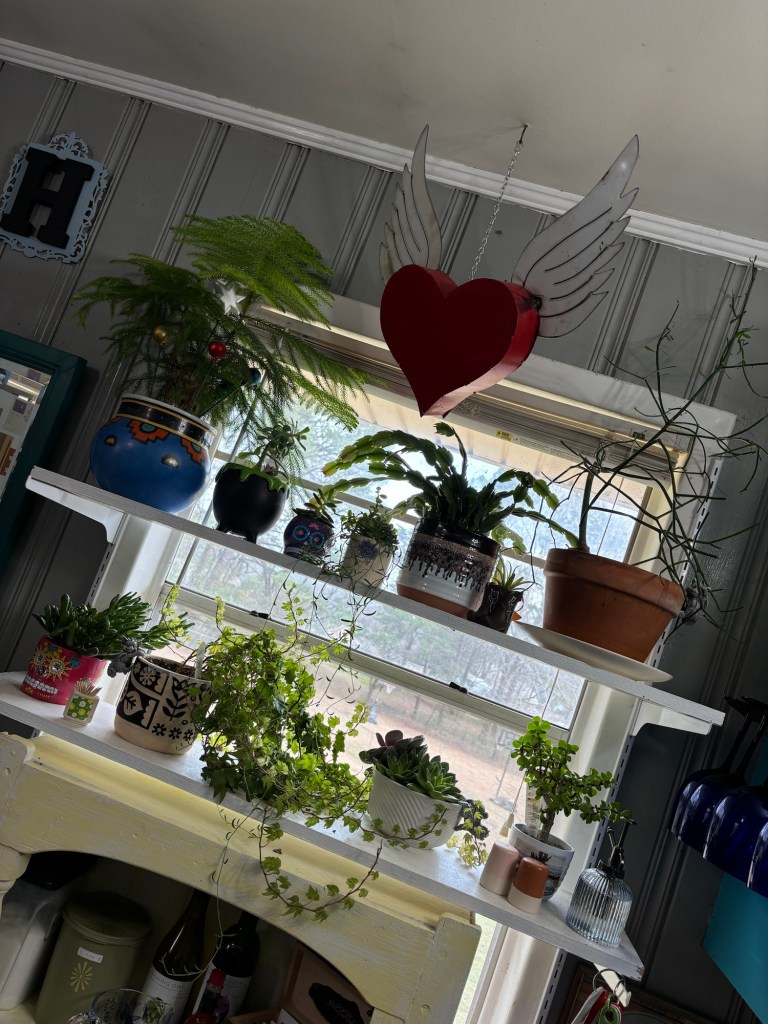 Today’s photo is my back kitchen window, with many plants I’ve accumulated over the years – from a tiny Christmas evergreen I bought years ago at the grocery store and repotted (she’s gotten so big), to the pencil cactus that our friend Bryan gave Pop many years ago and it now has come to me, to Warhol, a gift from my Ginny, to my most recent birthday gift from Bug, so many of them are dear to my heart. ♥️