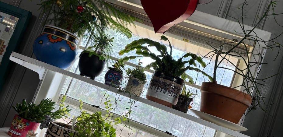 Today’s photo is my back kitchen window, with many plants I’ve accumulated over the years – from a tiny Christmas evergreen I bought years ago at the grocery store and repotted (she’s gotten so big), to the pencil cactus that our friend Bryan gave Pop many years ago and it now has come to me, to Warhol, a gift from my Ginny, to my most recent birthday gift from Bug, so many of them are dear to my heart. ♥️