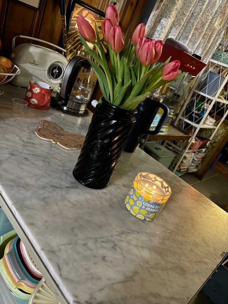 Gorgeous tulips from my better half on a puny weekend in. ♥️