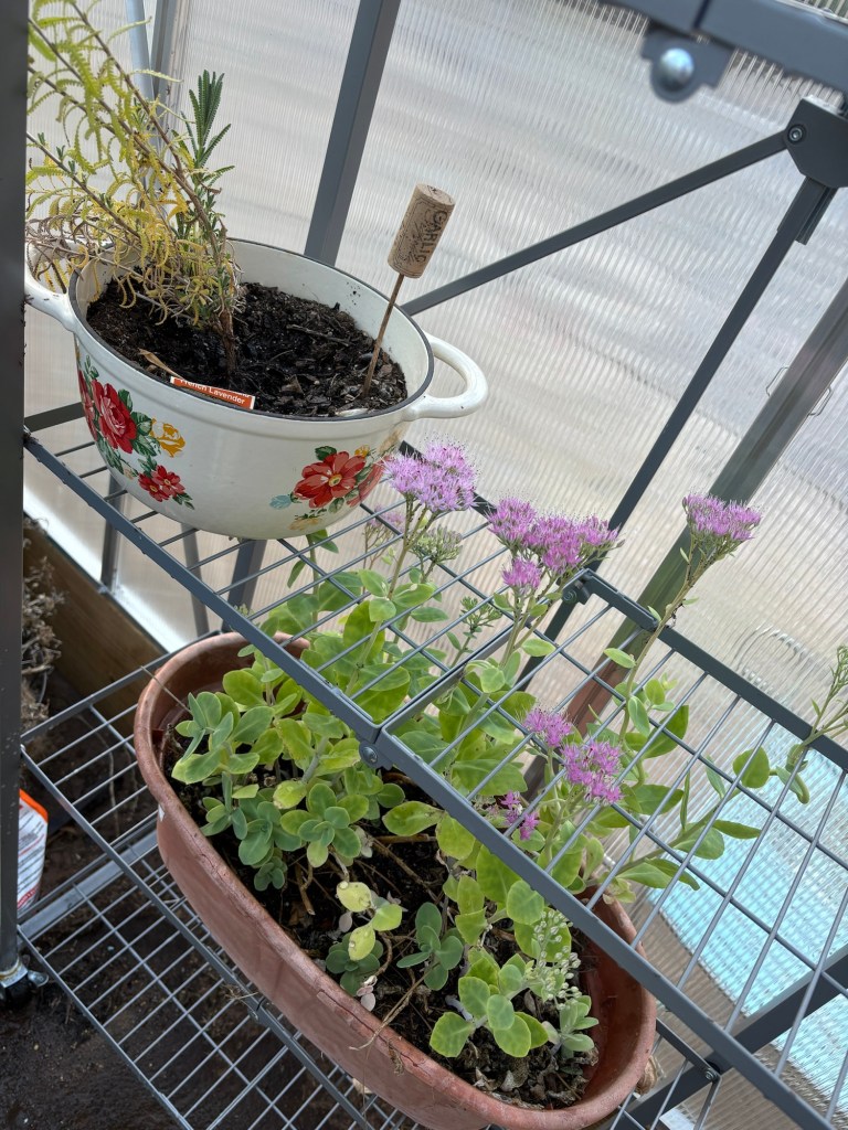 In the midst of crazy cold, these purple flowers from Pop have bloomed in my greenhouse – and they are so pretty. 😍
