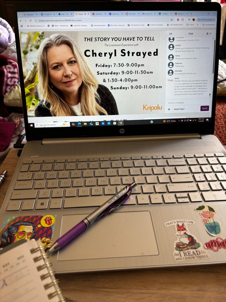 Hours of listening to her, as well as being led in writing exercises by her, was a dream and I learned so much.