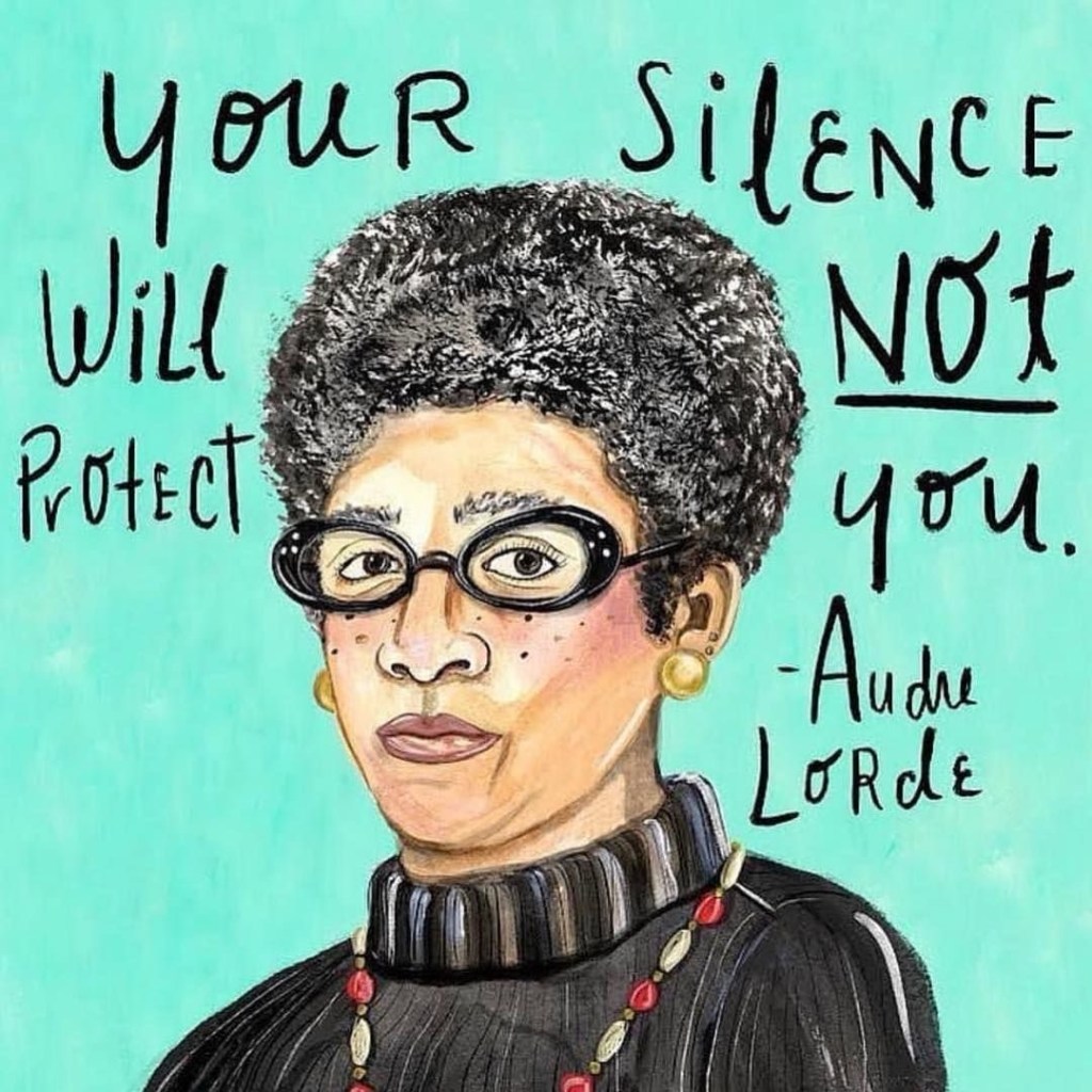 In the words of the incredible Audre Lorde, “your silence will not protect you.”