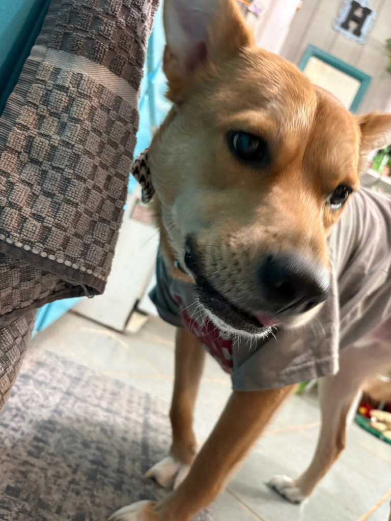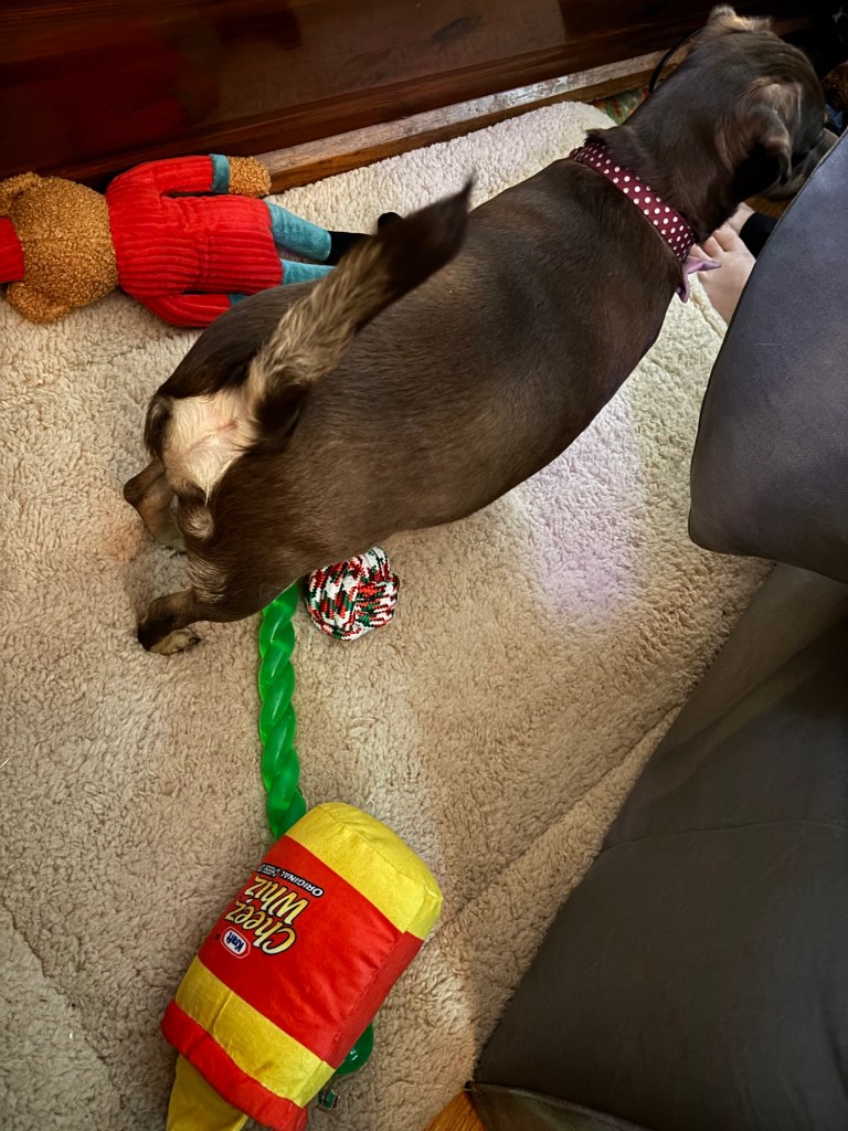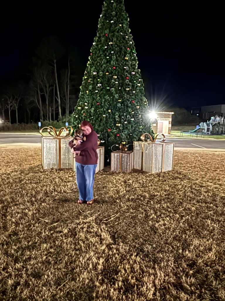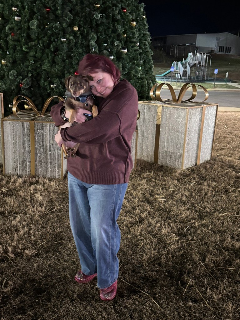 Finally, we stopped at our town Christmas tree for pictures. Teddy had the zoomies and couldn’t be still long enough – 😂 – but Ollie was looking handsome.