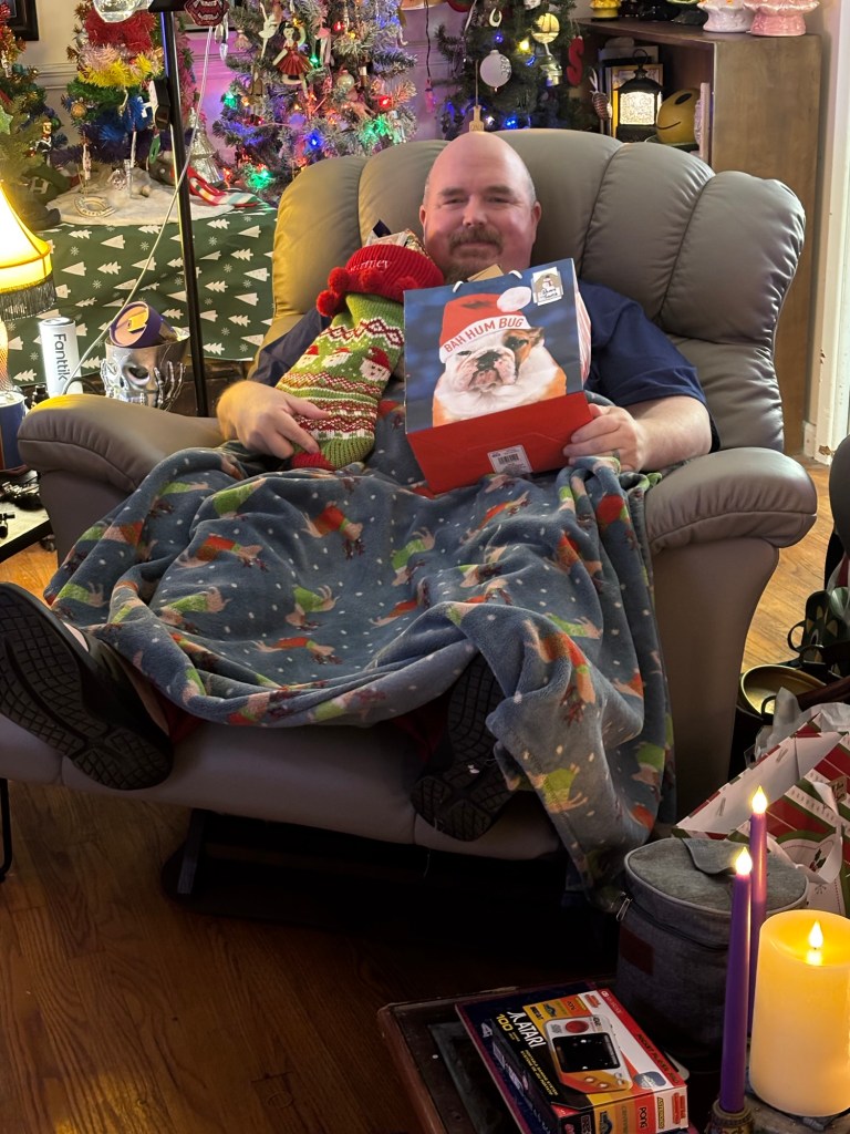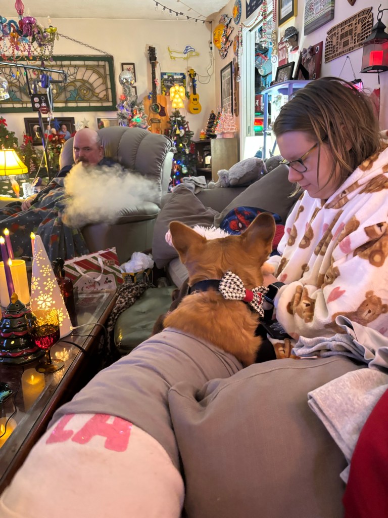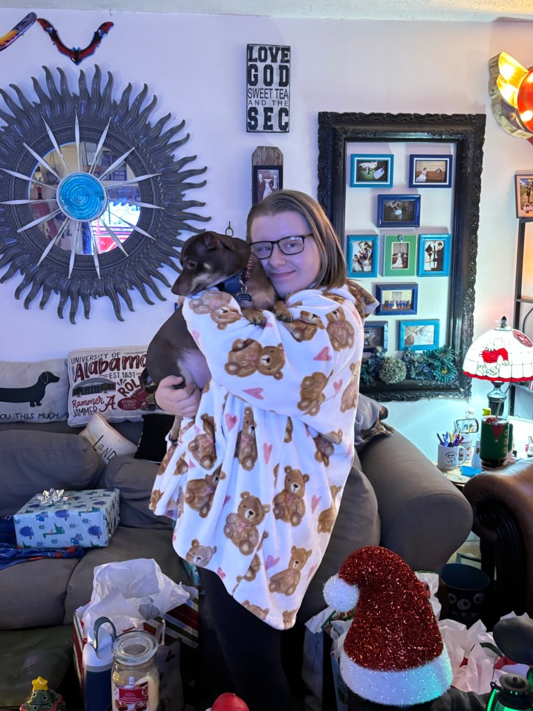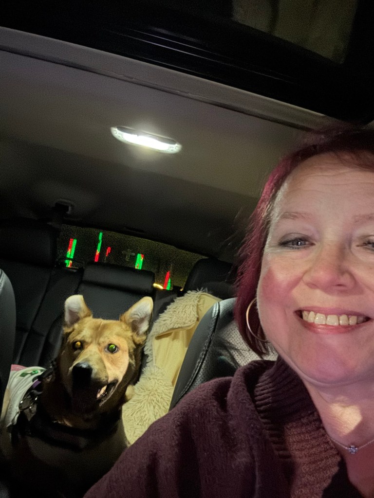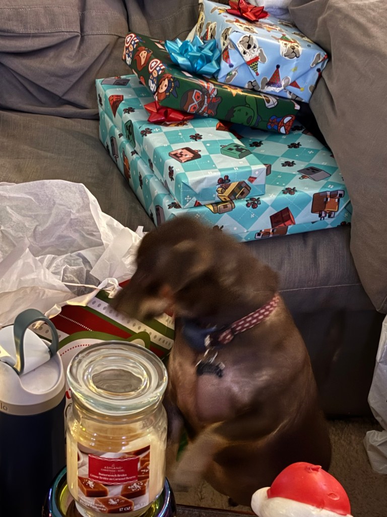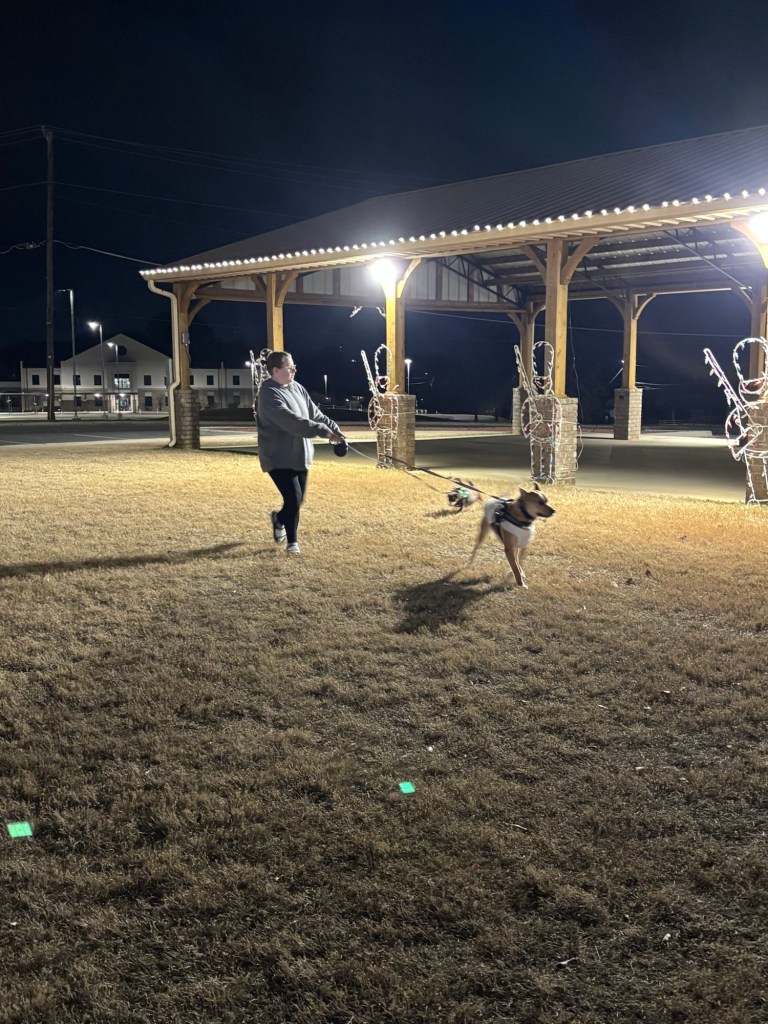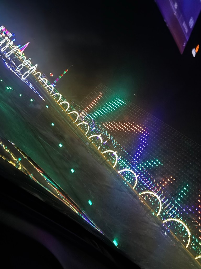 In addition to presents, Bug and I took Ollie and Teddy on a Christmas adventure to the Birmingham Race Course Drive-Thru Christmas Light and Music show. They really loved it.