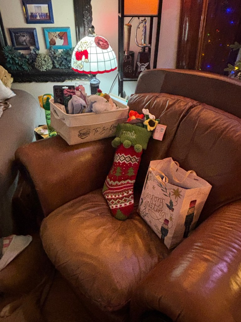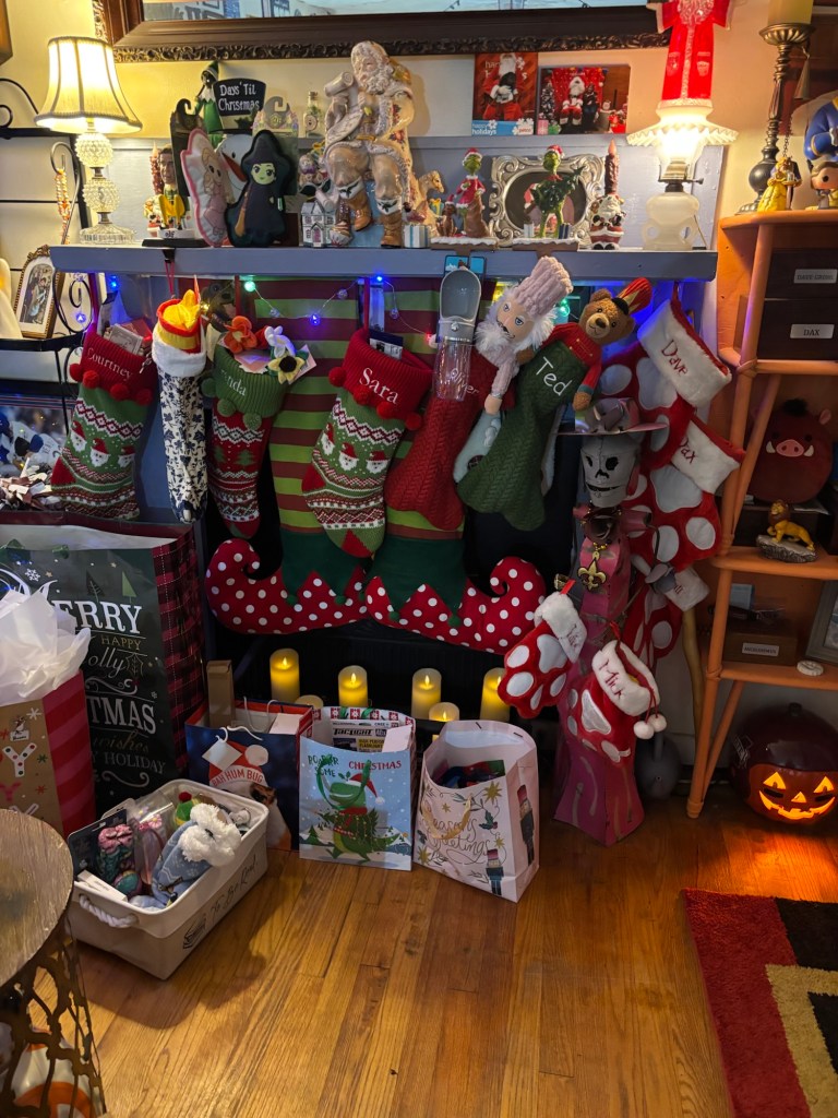 On Christmas morning, we open our stockings and then spend the day cozy in our pjs, watching Christmas movies and playing with our new toys from Santa. 😋
