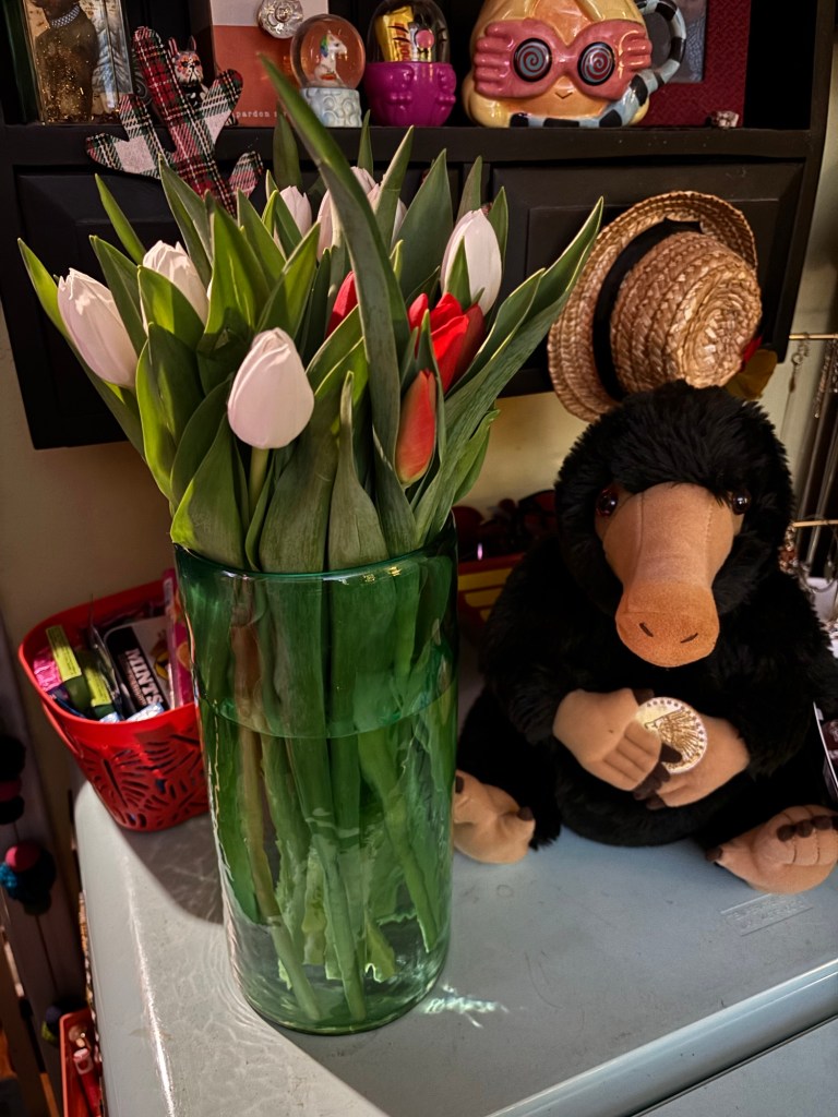 Not only are they making sure I have everything I need, but, y’all, yesterday my amazing better half brought me just a room full of flowers to brighten my spirits.